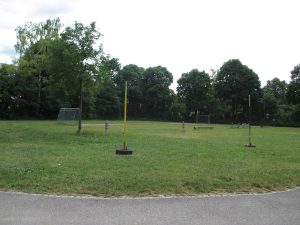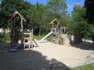 Sophie (10) freut sich, dass hier immer so viel los ist und man dadurch jedes Mal viele Kinder zum Spielen hat. Außerdem gibt es hier zwei Klettergerüste: ein kleines mit kleiner Rutsche und ein großes mit großer Rutsche. Das große finden unsere Forscherinnen Ronja (7) und Sophie (10) super, weil du an den Metallstangen gut klettern und dich entlang hangeln kannst, und die Rutsche auch einigermaßen schnell ist. Das kleinere Klettergerüst hat für uns die Spielforscherin Marie (3) bewertet: Sie findet es für kleine Kinder ganz toll, weil es ungefährlich ist und trotzdem Spaß macht, darauf zu klettern.