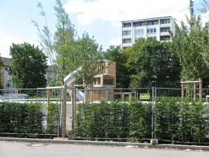 Auf Höhe des Gottfried-Böhm-Rings 35 wird momentan (Stand Sommer 2017) ein Spielplatz gebaut.