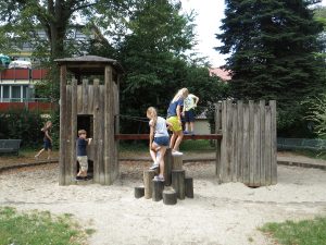 Tom (8), Lukas (7), Isabel (10), Lana (10), Paula (9), Emily (9), Johanna (9) und Florian (8) entdeckten diesen Spielplatz auf einer ForscherInnentour.