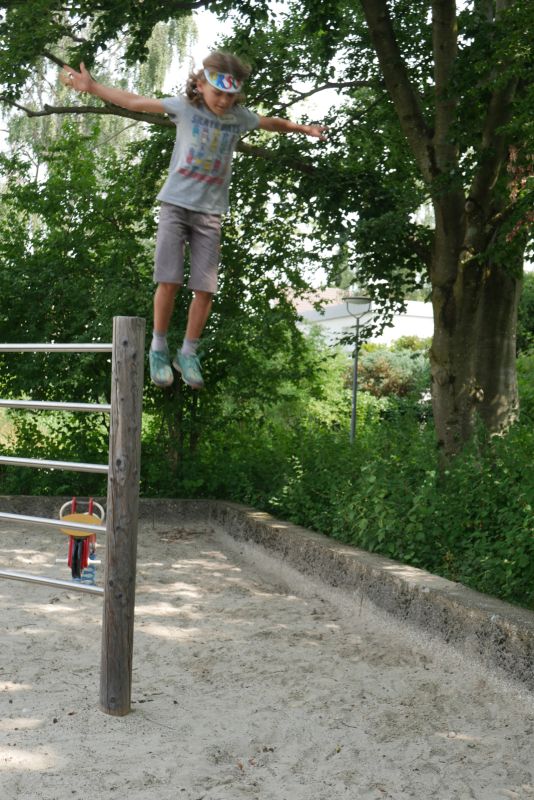 Auf diesem leider recht kleinen Spielplatz findest du zwei Feder Motoräder und eine Kletterleiter. Wenn man sich traut, kann man von der Leiter gut in den weichen Sand springen. Die Forschergruppe der Klasse 3d der Samberger Grundschule fand es aber ein bisschen wenig.