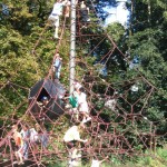 Das Klettergerüst ist riesig. Leider ist das große Flugzeug weg. Das kleine Flugzeug noch da, es ist super für kleine Kinder zum Spielen, wie auch das Holzhäuschen. In der Sonne stehen Schaukeln, Rutsche, Reckstange und Wippen.