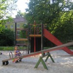 Hier gibt es eine Sandwerkstatt und einen richtigen Sandbagger, „der geht allerdings leider etwas schwer“. Außerdem findest du eine Tischtennisplatte und Schaukeln. Besonders toll finden die Kinder die zwei Schaukeln nebeneinander.