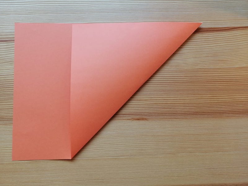 1. Schritt Du brauchst für die Lesezeichen nicht unbedingt Origamipapier. Nimm einfach ein ganz normales DINA4 Papier und schneide es dir zurecht: Falte dazu die rechte untere Ecke nach oben und schneide den links entstandenen Streifen ab. Nun hast du die quadratische Form, die du für dein Origami brauchst und kannst gleich mit dem Falten loslegen! |