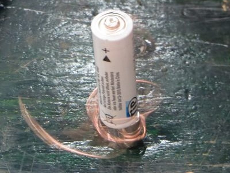 Du kannst die ausgefallensten Formen und Figuren aus dem Draht biegen. Wichtig ist nur, dass der Draht den Pluspol und den Magneten berührt.