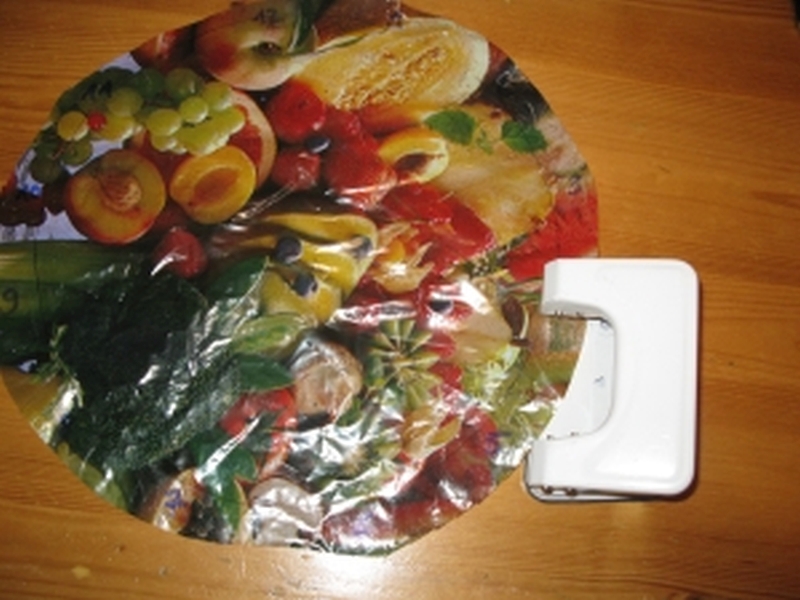 Dann schneidest du den Kreis aus der Plastiktüte aus. |