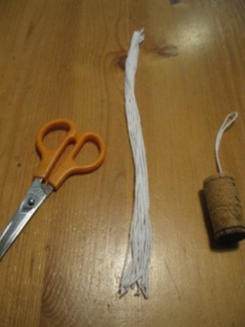 An den Korken knotest du noch ein zusätzliches Stück Schnur als Schlaufe.
