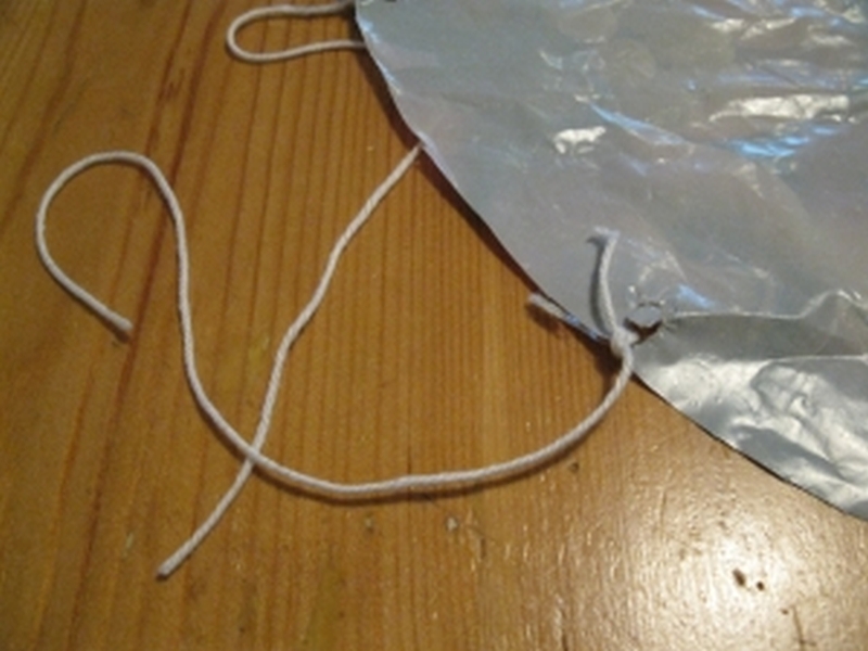 An jedes Loch im Plastik-Kreis knotest du ein Stück Schnur.