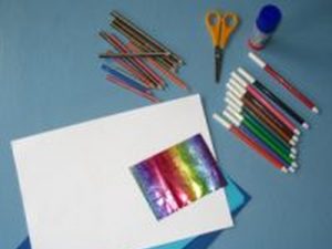 Auf die Rückseite klebst du nun das bunte Papier. |