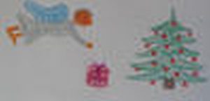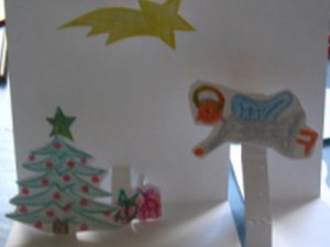 Male auf ein zusätzliches weißes Papier (nicht das gefaltete!) Bilder: wir haben hier zum Thema Weihnachten zum Beispiel einen Engel und einen Weihnachtsbaum gemalt: