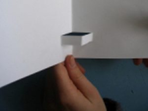 In das weiße gefaltete Papier machst du zwei Schnitte nebeneinander in einem Abstand von 1 bis 2 cm.
