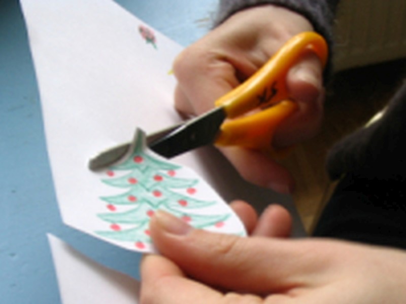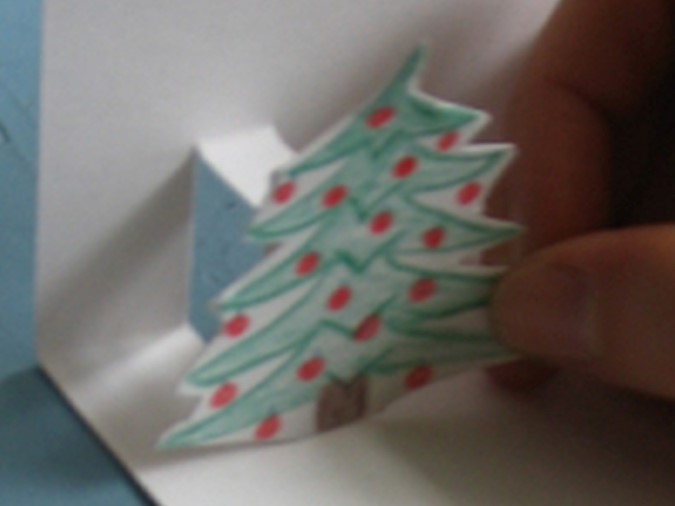 Male auf ein zusätzliches weißes Papier (nicht das gefaltete!) Bilder: wir haben hier zum Thema Weihnachten zum Beispiel einen Engel und einen Weihnachtsbaum gemalt: