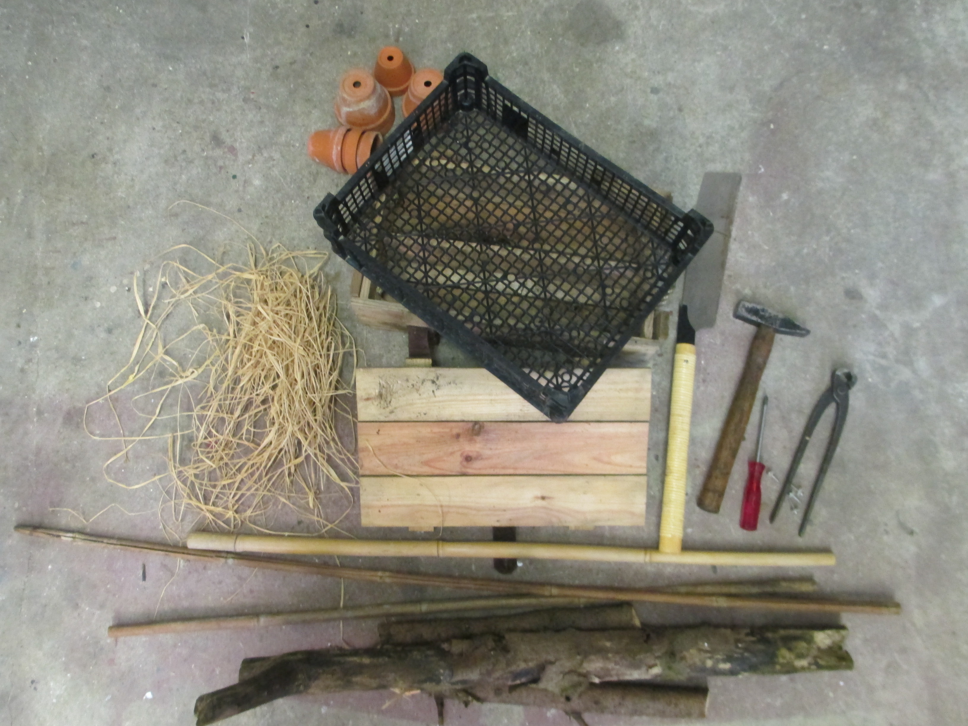 Den Hasendraht passend zuscheiden damit er als Deckel auf eine Obst- oder Weinkiste passt. Du kannst auch aus Kuststoffkisten einen Deckel ausschneiden.
