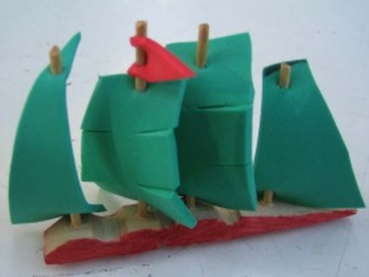 Wenn der Leim trocken ist, dann kannst du die Segel an den Masten befestigen.