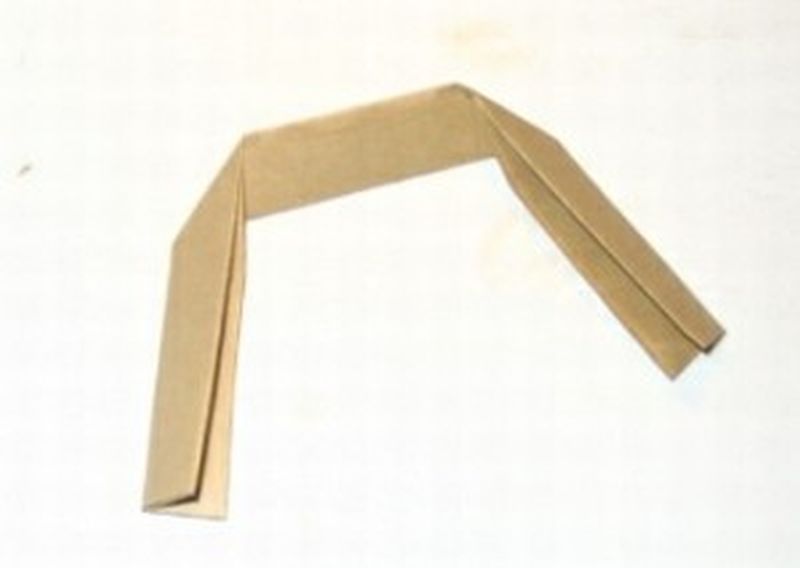 Aus einer Papiertasche schneidest du Streifen, die du doppelt nimmst und wie auf dem Bild faltest. Das werden die Henkel für deine Taschen. Du brauchst 12 Stück davon.