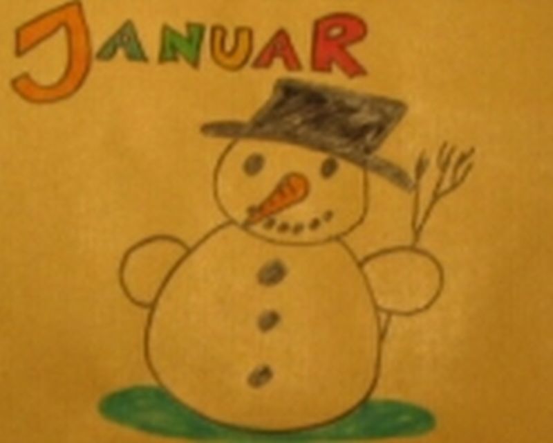 Damit der Kalender richtig schön wird, male ein Bild zu jedem Monat oder beklebe die Papiertasche.