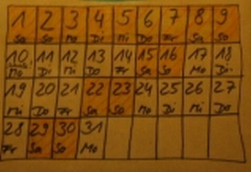 einen Kalenderüberblick, von dem du die Tage abschreiben kannst,