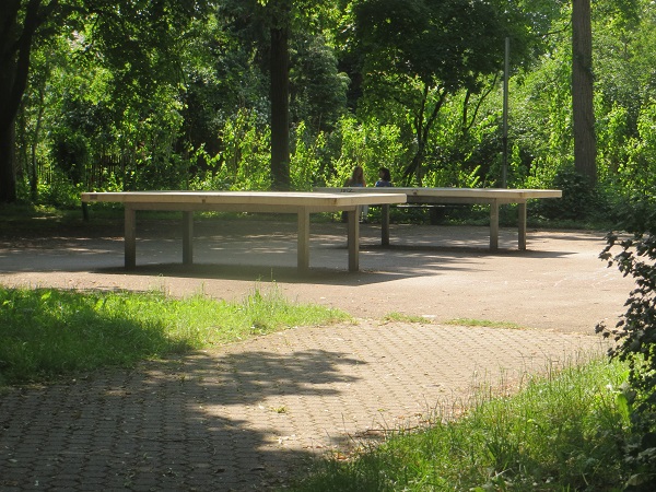 Bei Spielplatz am Pfrontener Platz findest du auch Platten zum Tischtennis spielen.
