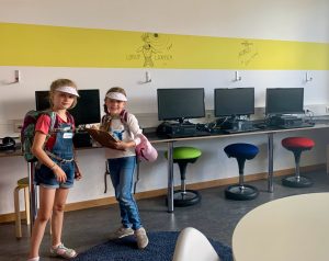 Besonders interessant fand unsere Forschergruppe den Musikraum. Dort sind die Wände mit Schaumstoff verkleidet, damit es weniger hallt und man gute Tonaufnahmen machen kann. Es gibt im Trafixx mehrere Gitarren und Bässe und auch ein elektronisches Schlagzeug.