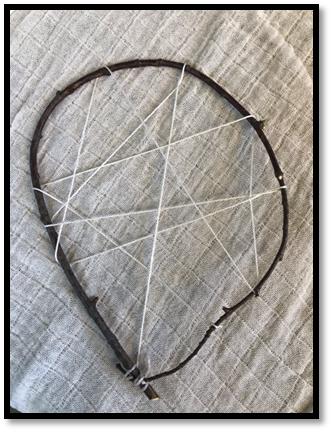 Binde den Faden an einer Seite fest und webe dann ein Fadennetz kreuz und quer von einer Seite zur anderen. Am Besten wickelst du den Faden immer noch einmal um den Zweig, bevor du wieder auf die andere Seite gehst. Du kannst sogar zwischendurch einfache Knoten machen.