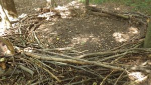 Jedes Kind suchte Stöcke für das Waldsofa, alle zusammen bauten das runde Sitznest.