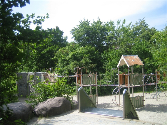 Größere Kinder gehen auf den Spielplatz im östlichen Teil des Zamilaparks. Von der Kletterwand kann man sich an Ringen entlang hangeln zu einem Spielgerät mit Netz und Brücken. Das Piratenschiff regt zu spannenden Spielen an. Die Schaukeln, auf denen man hoch hinaus kann, fand Samara (10) besonders spannend. Ihr machte auch die breite Rutsche viel Spaß.
