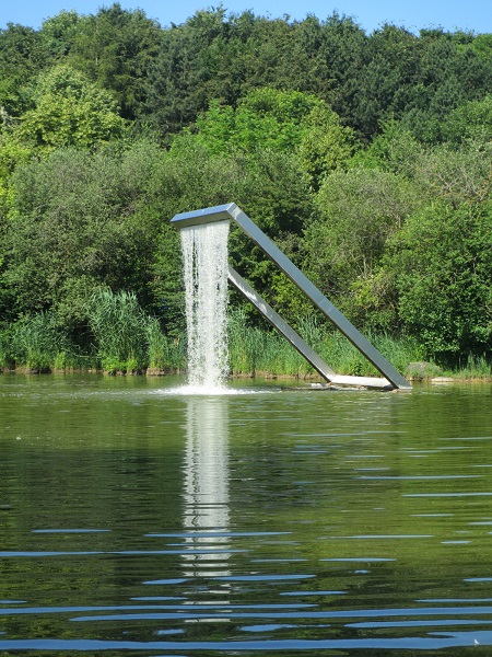 Auf dem Westsee im Westpark kannst du ein großes offenes Viereck sehen, das schräg im Wasser steht. Aus der oberen Seite läuft Wasser hinuntern. Unsere Forscher haben es „Wasserwand“ genannt. Außerdem haben sie bemerkt, dass dort nicht immer das Wasser läuft. Manchmal ist es auch aus.