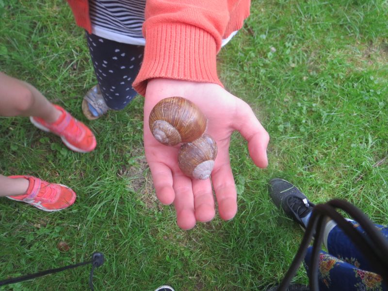 Veronika (9) und Sophie (9) der Klasse 3b der Walliser Grundschule haben auf der Wiese, rund um den Spielplatz an der Forst-Karsten-Allee, große Weinbergschnecken mit tollen Schneckenhäusern entdeckt. Auch schöne leere Schneckenhäuser kannst du hier finden.