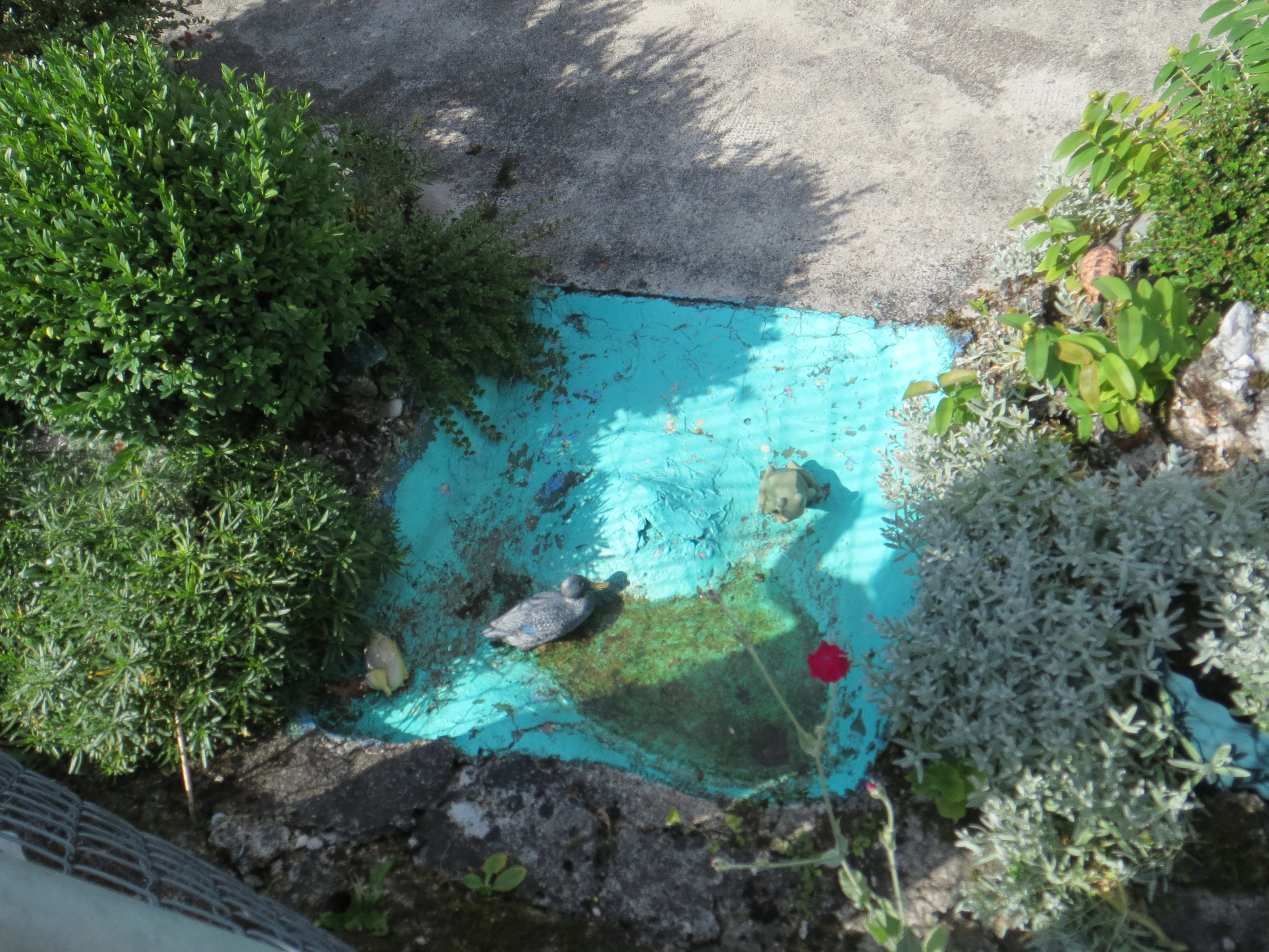 Die ältere Dame, die dort schon sehr lange wohnt, hat uns erzählt, dass das Haus schon seit 1946 steht. Um das Haus herum ist ein sehr hübscher Garten mit vielen Blumen und Steinfiguren, wie zum Beispiel eine Ente und Frosch in einem Stein-Teich.