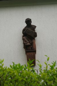 Bei Haus Nummer 43 haben Lilly (9), Mia (8), Dana (10), Florentin (9) und Moritz (9) der Grundschule an der Werdenfelsstraße ein Männchen entdeckt, dass Ziehharmonika spielt.