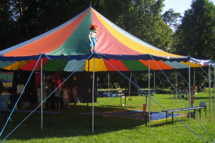 Das Zelt steht schon. Es gibt ein großes Zirkusfest.