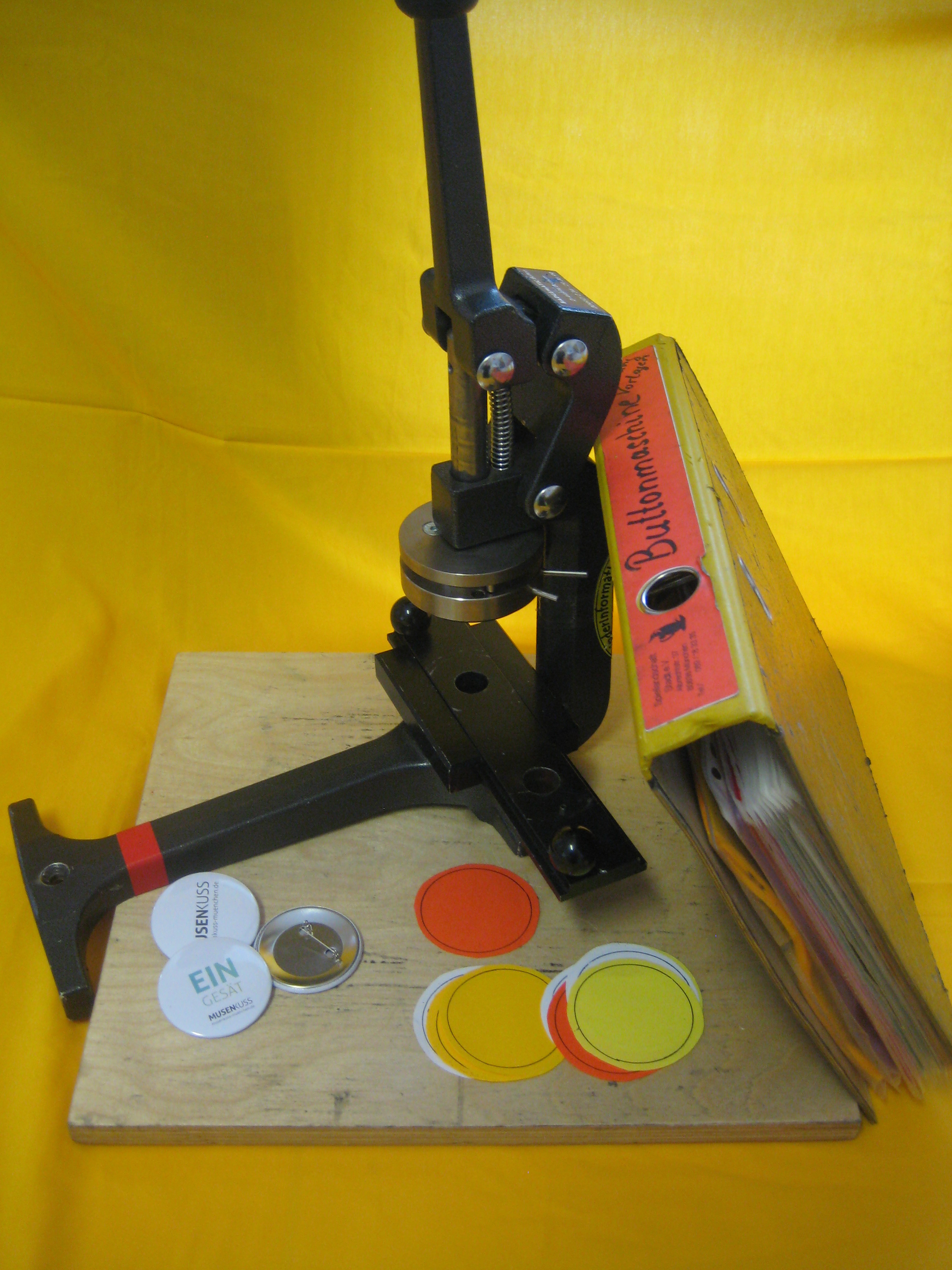 Mit der BUTTONMASCHINE könnt ihr eigene Anstecker gestalten. Lasst eure Phantasie spielen mit selbst erdachten oder ausgemalten Motiven, Bildchen, Stickern, Zeitungsausschnitten, Fotos und Buchstaben.