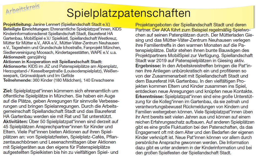 Dokumentation des Arbeitskreis Spielplatzpatenschaften 2020: