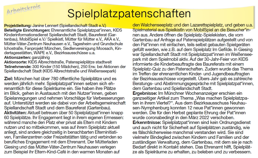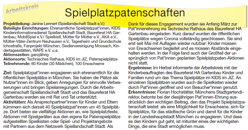 Dokumentation des Arbeitskreis Spielplatzpatenschaften 2021: