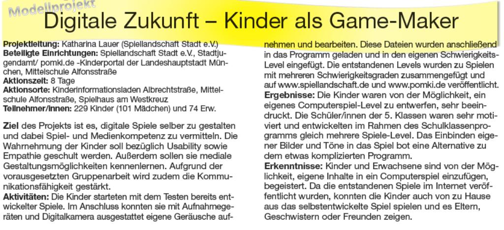 Modellprojektpartner: Spiellandschaft Stadt e.V., pomki.de (Offizelles Kinderportal der Landeshauptstadt München)
