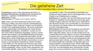 ist Austausch und gegenseitige Unterstützung der Generationen. Eltern und deren Kleinkinder bekommen Unterstützung im Alltag und ihnen wird die Lebenserfahrung von Großeltern zuteil. Zwischen Kindern und Großeltern entsteht eine langfristige Bindung. Senior*innen und Eltern erlangen durch gezielte Fortbildungs- und Beratungsangebote umfangreiche Kompetenzen im Umgang mit Kleinkindern.