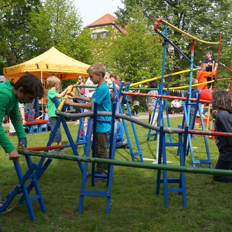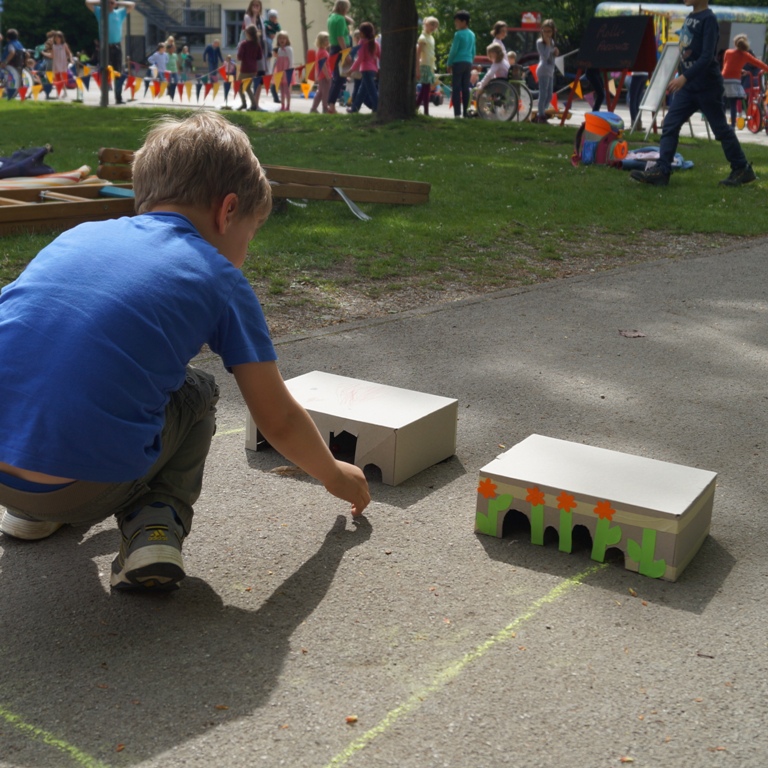 Vermitteln von Spielideen (auch) für ungewöhnliche Spielorte: Hinterhöfe, Schulhöfe, Gehweg, Wohnanlage, Grünanlagen und mehr