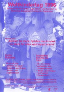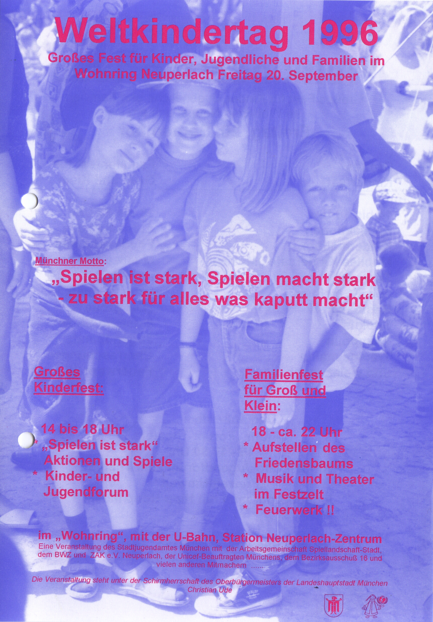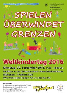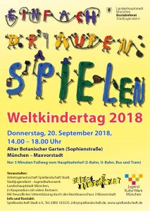 Zum Weltspieltag am 28. Mai und zum Weltkindertag am 20. September führt das Netzwerk Spiellandschaft Stadt in München in jährlich wechselnden Stadtteilen große Kinder- und Familienfeste durch – für das Kinderrecht auf Spiel!