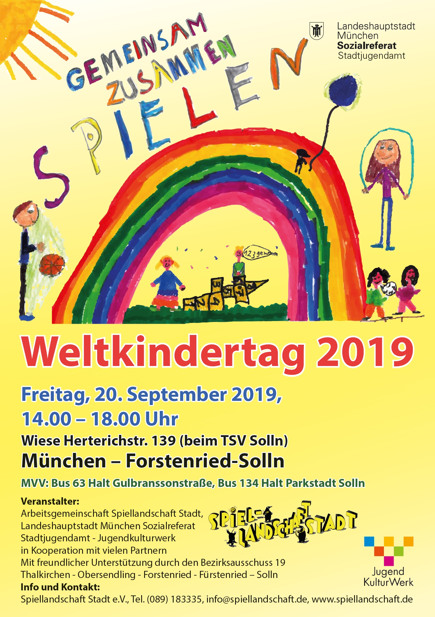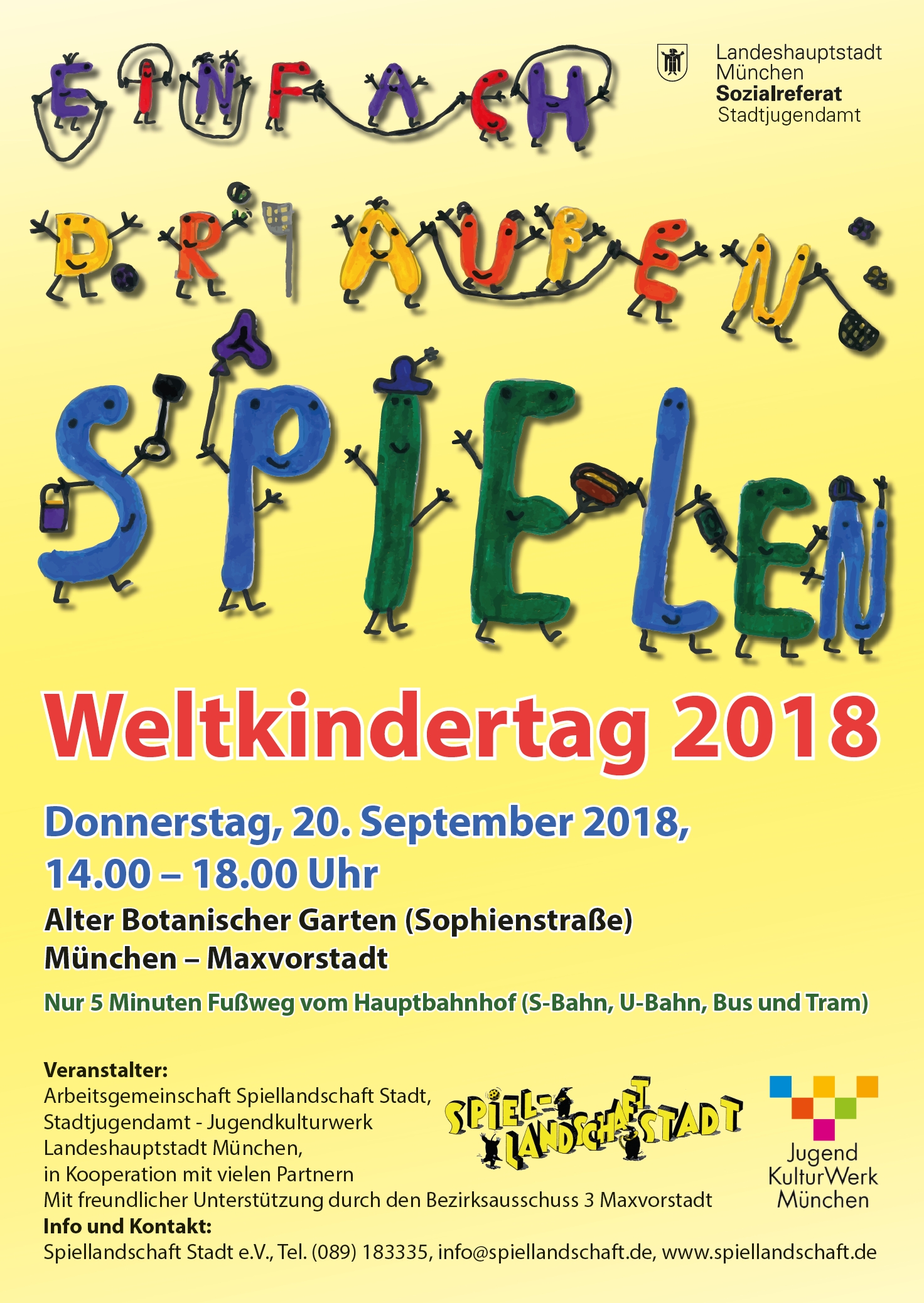 München war von Beginn an dabei mit zentralen Veranstaltungen, initiiert durch die Arbeitsgemeinschaft Spiellandschaft Stadt im Auftrag des Sozialreferats der LH München. Die Veranstaltungen finden in jährlich wechselnden Stadtteilen statt. Es wird immer ein besonderes Anliegen zur Verbesserung der Spiel- und Lebenssituation der Kinder und Familien in München und im speziellen auch im entsprechenden Stadtteil aufgegriffen und positiv verstärkt. Seit 2011 werden Weltspieltag und Weltkindertag in München miteinander in einem Stadtteil verknüpft.